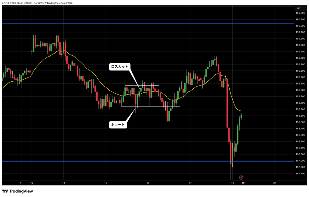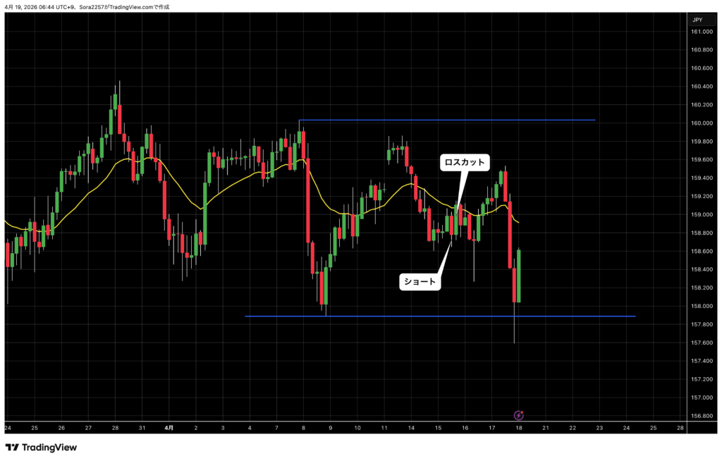 4時間足では下目線なのでショートに優位性のある環境には変わりがない。