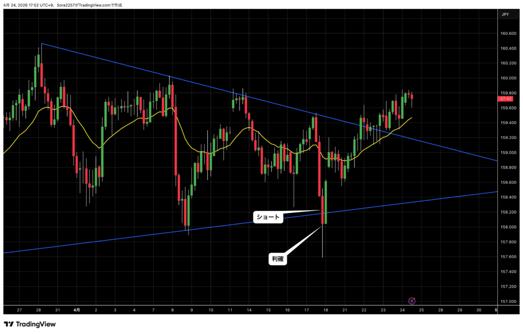 4時間足の環境認識を上手くトレードに反映できた良いトレードだった!
